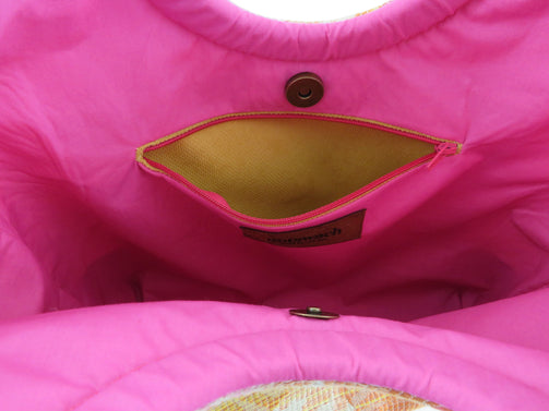 Each purse is one-of-a-kind, designed, and sewn one by one with lots of love. We use repurposed fabric swatches and remnants which would have normally been thrown into a landfill. We have four styles and two more on the way.