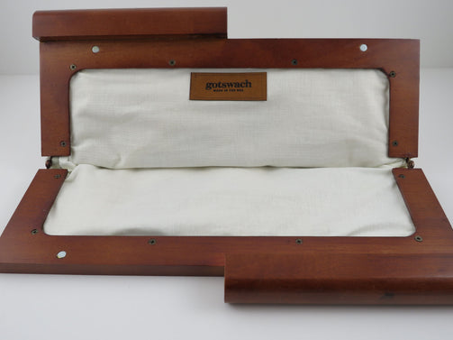 - Wood handle on hinges, magnetic closure