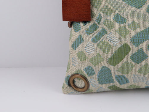 • 12.5" x 8" Teal, seafoam, lime green geometric-zig zag pattern