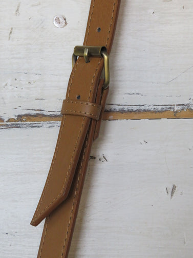 - 1" Caramel faux-leather crossbody strap
