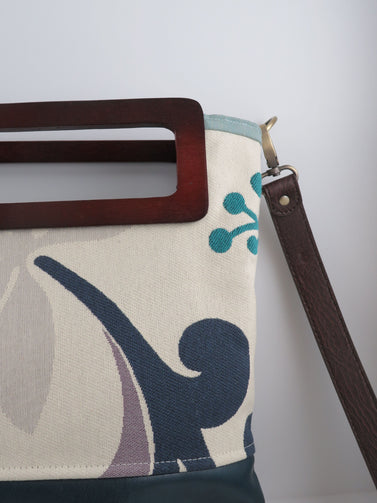 Each purse is one-of-a-kind, designed, and sewn one by one with lots of love. We use repurposed fabric swatches and remnants which would have normally been thrown into a landfill. We have four styles and two more on the way.