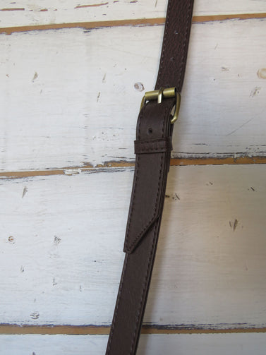 - 1"burgundy-brown, faux-leather crossbody strap