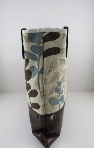 - 16" x 13 1/2" Cream with blue, tan and brown mod flowers