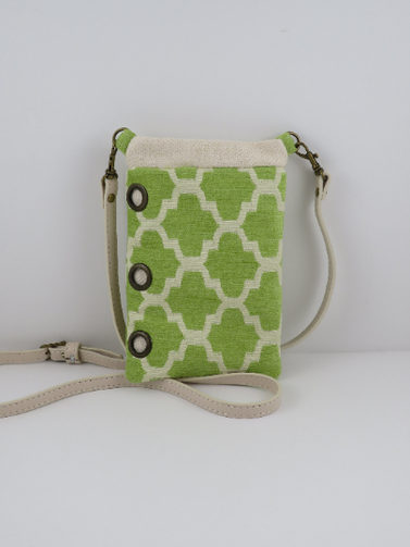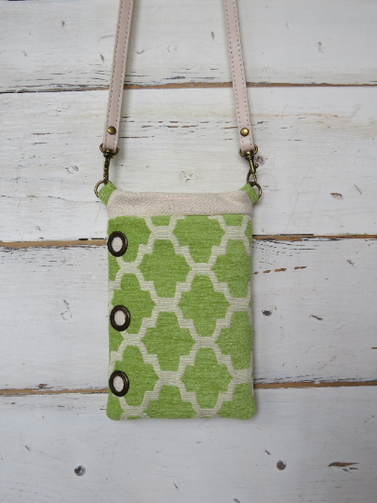 Each purse is one-of-a-kind, designed, and sewn one by one with lots of love. We use repurposed fabric swatches and remnants which would have normally been thrown into a landfill. We have four styles and two more on the way. Made in the USA.