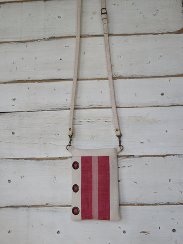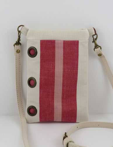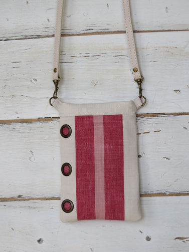 Each purse is one-of-a-kind, designed, and sewn one by one with lots of love. We use repurposed fabric swatches and remnants which would have normally been thrown into a landfill. We have four styles and two more on the way. Made in the USA.
