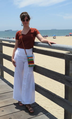 Each purse is one of a kind, designed and sewn one by one with lots of love. We use repurposed fabric swatches and remnants which would have normally been thrown into a landfill. We have four styles and two more on the way. Made in the USA.
