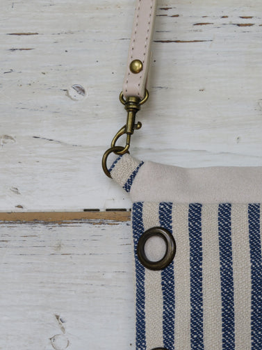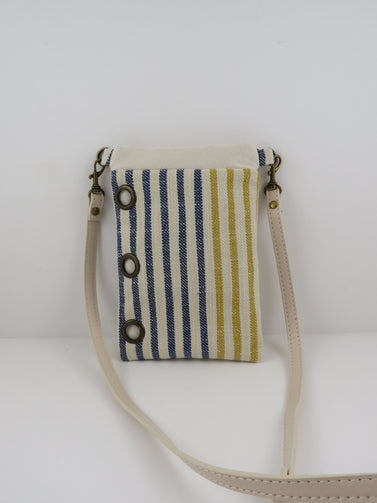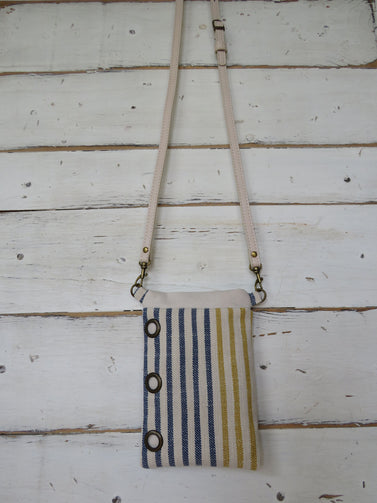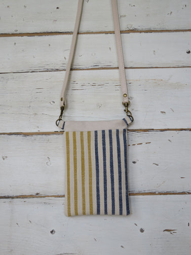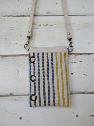 - 5" x 8" Stone ivory with navy and mustard yellow stripes